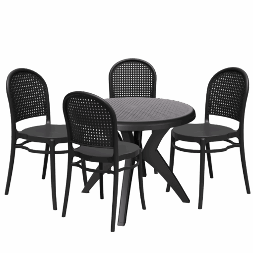 Mesa Deluxe 90 Nude com 4 Cadeiras Telinha Retrô Preto – FORTE PLÁSTICO
