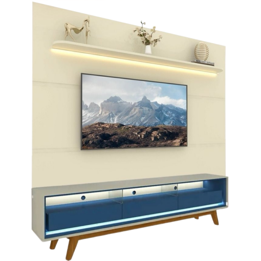 Painel Royal 220 Off White + Rack Requinte 212 Cinza/Off White – GELIUS