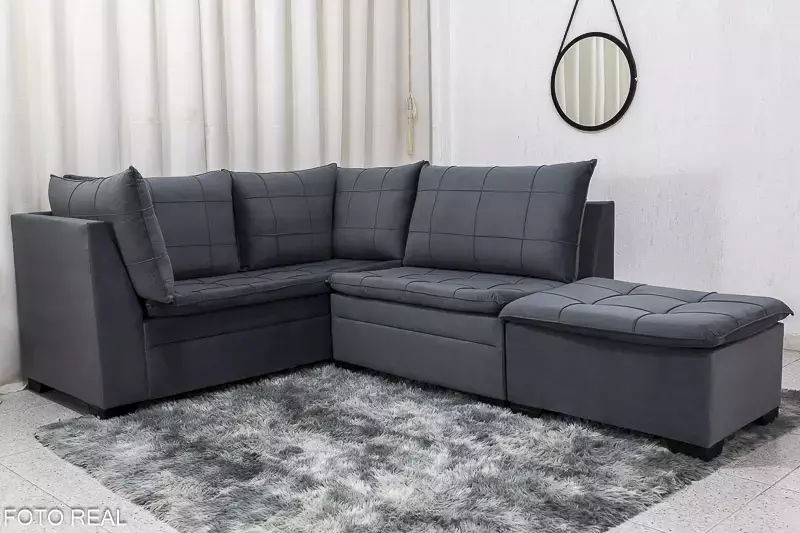 Sofá Canto 5 lugares com Puff Viena Veludo Marrom A17
